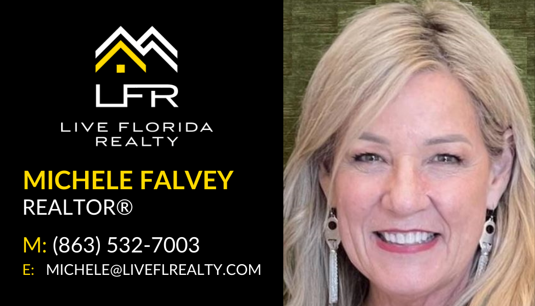 Hello! My name is Michele Falvey and I am happy to be your real estate agent! I will be your primary point of contact as we look for homes. Now you have my personal cell phone number: (863) 532-7003, so feel free to text or call me with any questions!